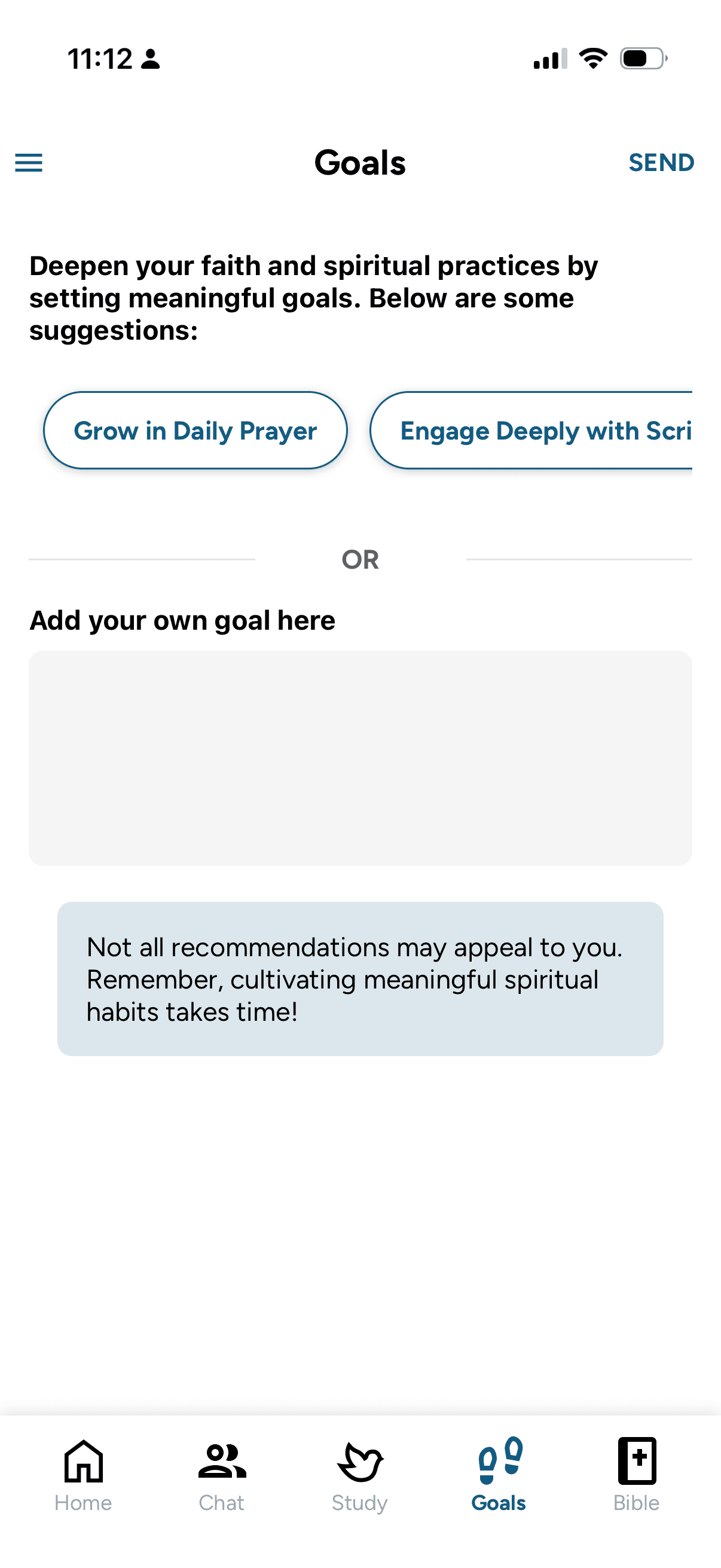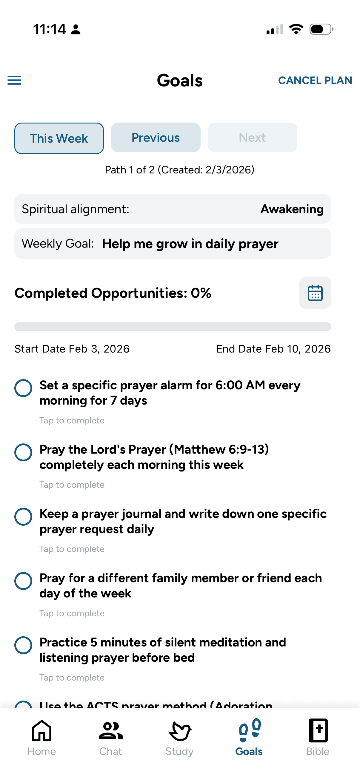 Set spiritual goals like prayer, Bible reading, and reflection, and track your progress as you grow in your faith.